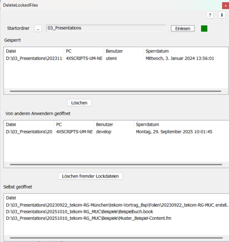 Zu jeder *.lck-Datei wird angezeigt durch welchen Nutzer und wann die dazugehörende *.fm/*.book-Datei geöffnet wurde.