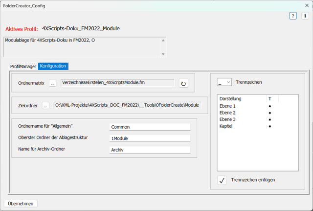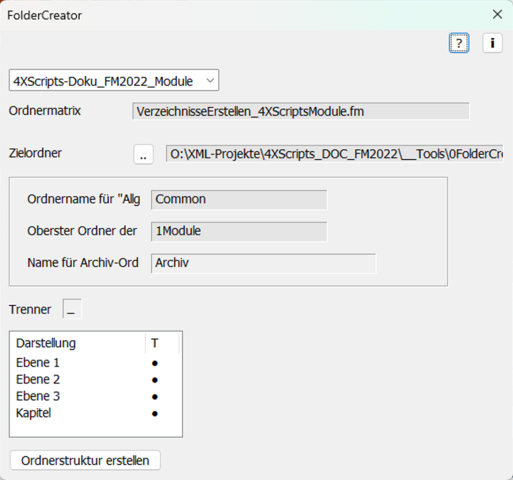Verarbeitet eine FrameMaker-Tabelle mit Ordnernamen und erstellt eine Ordnerstruktur.