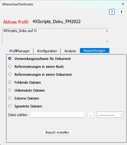 Bei einem Analyselauf werden alle Informationen zu Dokumenten, Ordnern und Referenzierungen in einer XML-Datei gespeichert, die dann als Datenbasis für die Auswertung dient. Neu angelegte Dokumente erfordern einen erneuten Analyselauf.